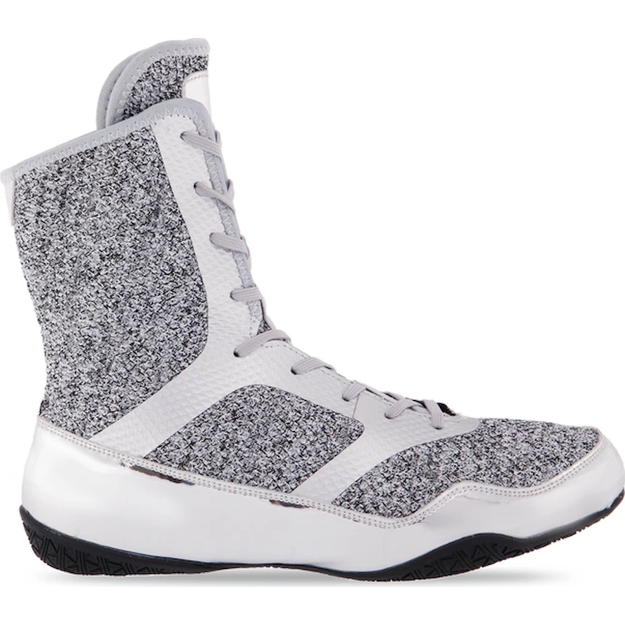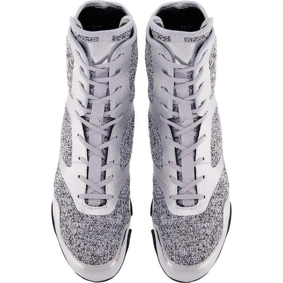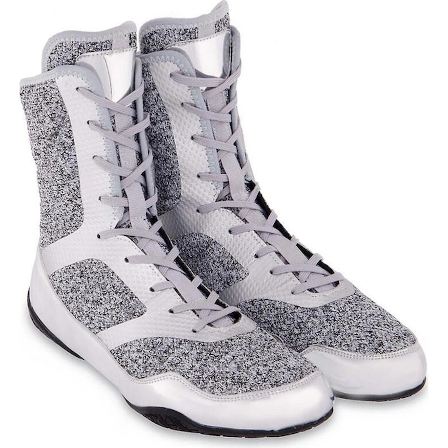 Partea superioară a încălțămintei este realizată dintr-un tandem de poliuretan de calitate. Astfel, modelul devine extrem de rezistent și durabil. Șireturile înalte permit o ajustare bună pe picior și o fixare eficientă a gleznei. Cauciucul antiderapant de pe talpă asigură o aderență excelentă la suprafață și împiedică boxerii să alunece chiar și în timpul mișcărilor bruste.