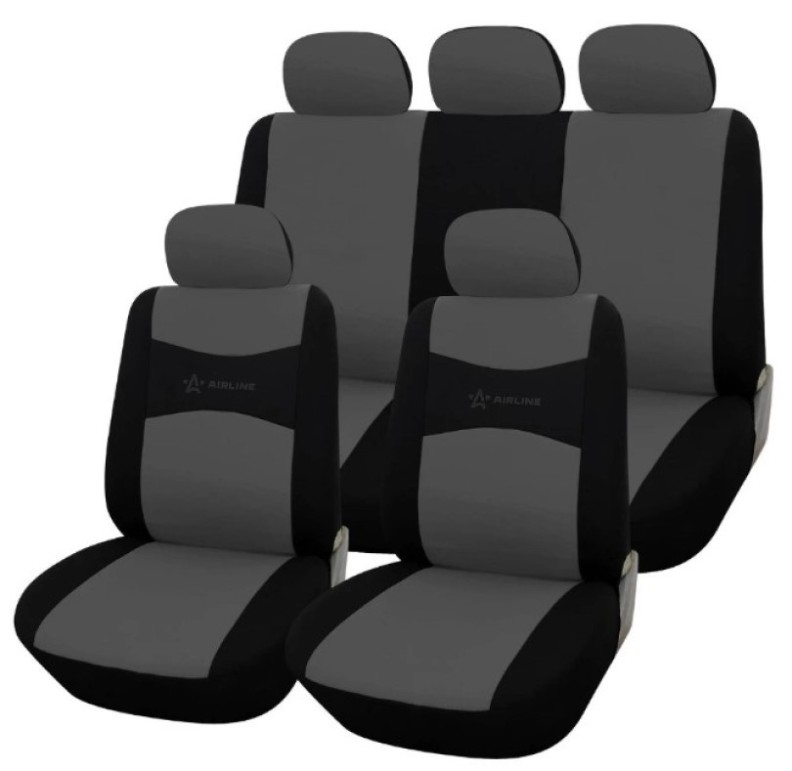 In set2 spătare față, 2 scaune față, 1 spătar spate modular, 1 scaun spate, 5 huse pentru cap