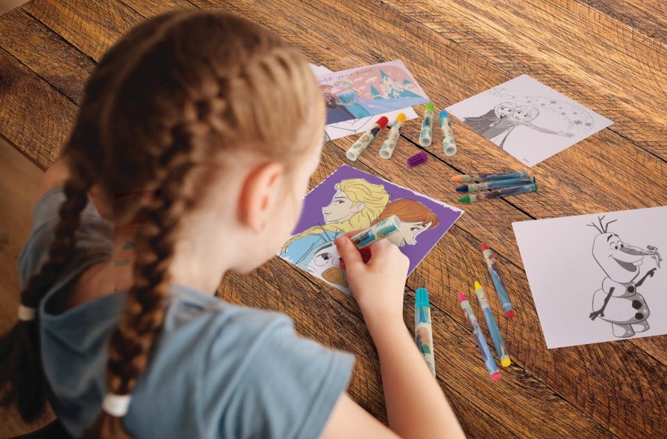In set20 de foi de colorat, 2 foi de sablon, 2 foi cu autocolante, 6 markere, 6 creioane colorate, 1 figură de desen din hârtie