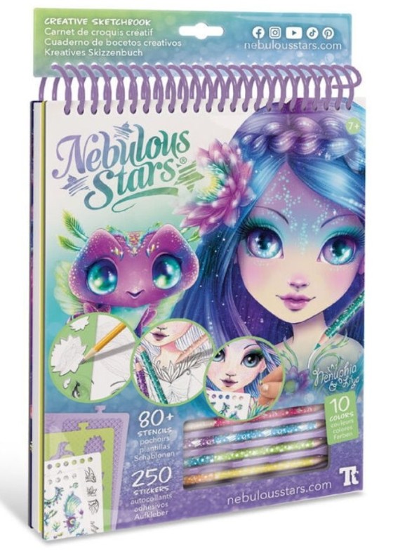 In set35 de pagini de schițe, 80+ șabloane, 3 modele de frecare, 250 de autocolante, 5 creioane colorate pe două fețe, 8 tehnici de desen, teoria culorii, istoria completă a lui Nenufia, instrucțiuni