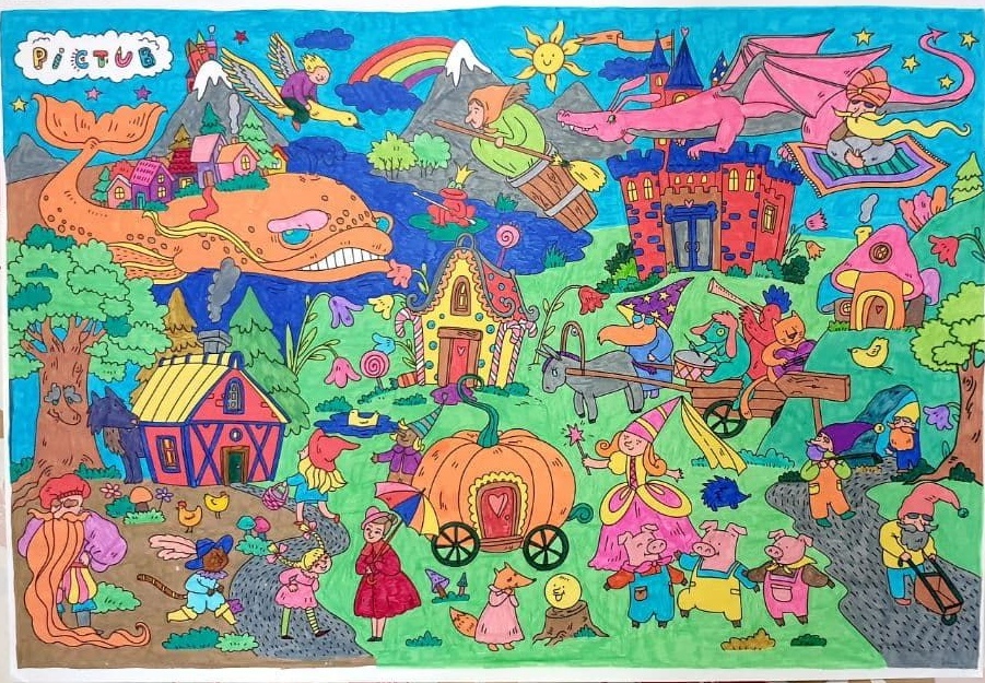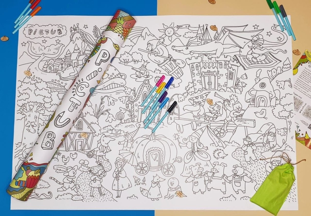 „PicTub” transformă orice spațiu din casă într-un colțișor de creație. De exemplu, dacă până acum i-ai interzis copilului tău să deseneze pe pereți, uite că în sfârșit îi poți îndeplini dorința! Nu-ți fie frică de faptul că vor rămâne urme, pentru că am ales o hârtie specială prin care carioca nu trece. Iar lipiciul dublu din set nu lasă semne pe suprafețe și poate fi înlăturat cu ușurință. Pune posterul pe perete sau pe jos și vei fi uimit cum personajele create de pictorii noștri te vor inspira pe tine și pe cei mici. Aici reguli nu sunt, limita e doar imaginația, lasă cerul să fie roz, iar câinele verde și vei vedea cum personajele prind viață. „PicTub” este un produs recomandat și maturilor, dar îndeosebi activităților în familie. Acest set vă oferă atât relaxare, cât și inspirație.