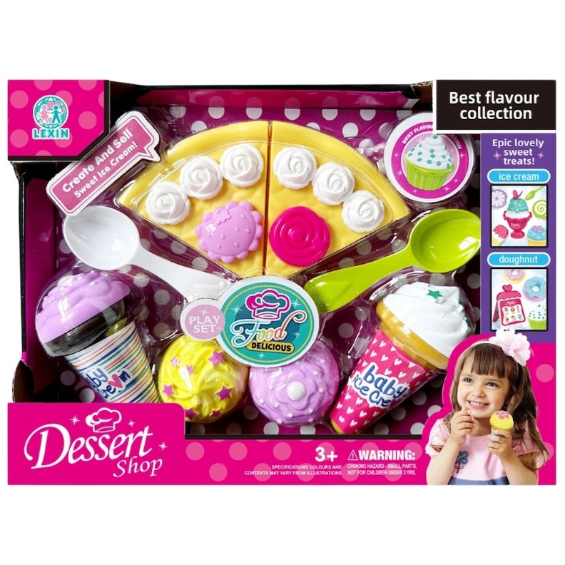 Un set adorabil si interactiv, cu o varietate de inghetate si tort de jucarie, impreuna cu ustensile specifice pentru a le ,,pregati" si "servi". Fiecare detaliu este atent realizat pentru a adauga realism jocului si pentru a incuraja copiii sa invete despre alimentatie, interactiuni sociale si sa simuleze experiente cotidiene. Este un cadou ideal pentru orice copil care adora sa se joace de-a patiseria sau sa organizeze petreceri de bucate delicioase!