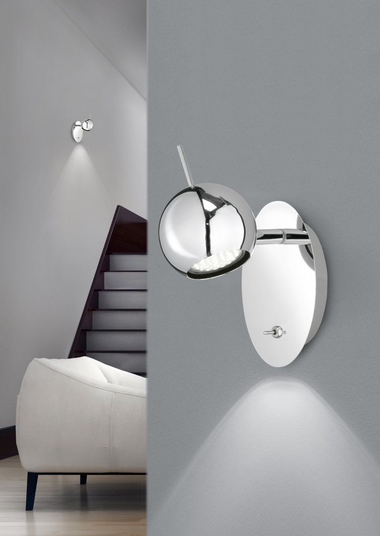 Aplica de perete BOWIE are un design futurist, cu un spot rotund. Lumina sa creează o atmosferă plăcută și confortabilă în living, invitând la relaxare. Datorită formei și culorii universale, acest corp de iluminat se integrează ușor în diferite stiluri de amenajare și arată excelent atât individual, cât și în combinație cu alte produse din aceeași serie. Diametrul produsului este de 8 cm, înălțimea — 14 cm, iar adâncimea — 15 cm. Poate fi pornit și oprit cu ajutorul unui întrerupător. Finisajul cromat elegant subliniază designul rafinat al aplicației, potrivită atât pentru interioare clasice, cât și moderne. Pentru o iluminare eficientă energetic, se recomandă utilizarea becurilor LED. Acestea reprezintă o alternativă optimă la becurile halogen, oferind o lumină de calitate superioară și economii de energie de până la 80%. În plus, becurile LED au o durată lungă de viață, emit puțină căldură și protejează mediul înconjurător.