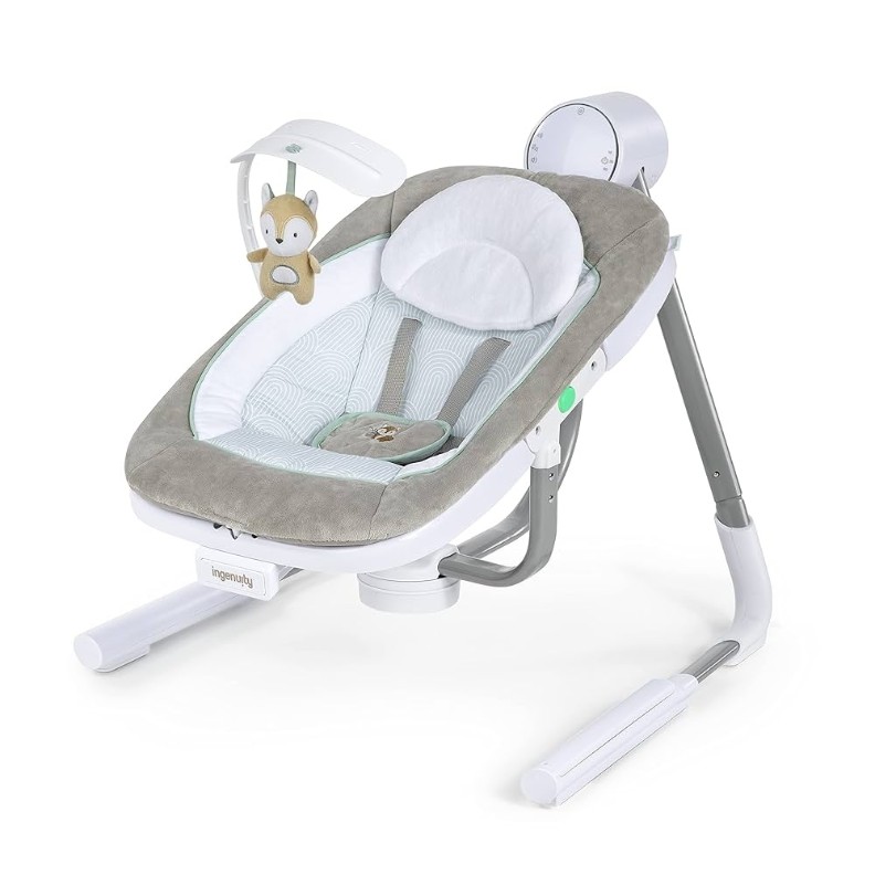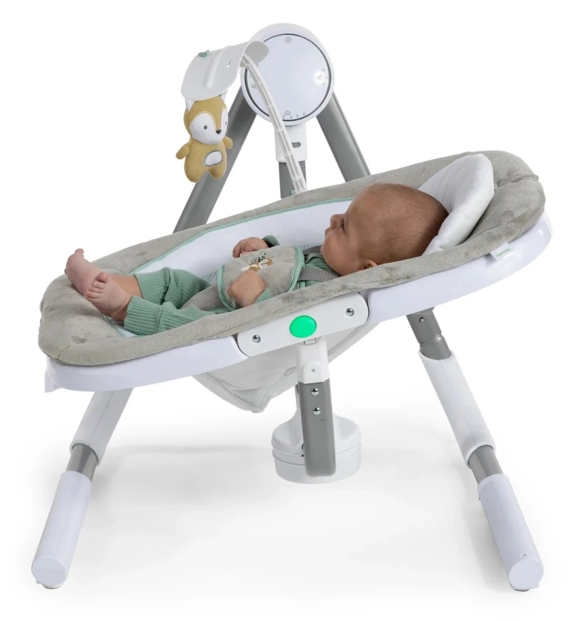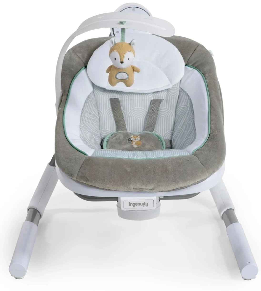 Scaunul balansoar pentru bebeluși ajută la calmarea acestuia cât timp este la vedere. Alegeți din 2 moduri cu vibrații liniștitoare: un leagăn calmant sau un scaun staționar cu 2 poziții de înclinare. O bară rotativă cu o jucărie vulpe din pluș ajută la captarea atenției bebelușului. Tetiera detașabilă susține nou-născuții, iar motorul de legănare silențios ajută bebelușul să rămână odihnit. Panoul de control GentleTouch vă permite să redați 19 melodii diferite, inclusiv sunete din natură și zgomot alb, la un volum la alegere, fără a apăsa niciun buton. Muzica se oprește automat după 20 de minute. Alegeți un timer pentru 30, 45 sau 60 de minute, cu oprire automată după 2 ore. Conectați balansoarul unisex AnyWay Sway cu cablul electric USB care economisește energie (adaptorul AC NU este inclus). Designul compact pliabil face leagănul ușor de depozitat și transportat. Utilizați de la naștere până la 6 luni sau până la 9 kg.