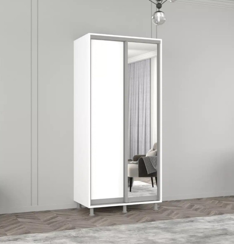 Dulap cu uşi glisante Mobildor-Lux Aron-S Chipboard/Mirror 100x240 White (00013745)