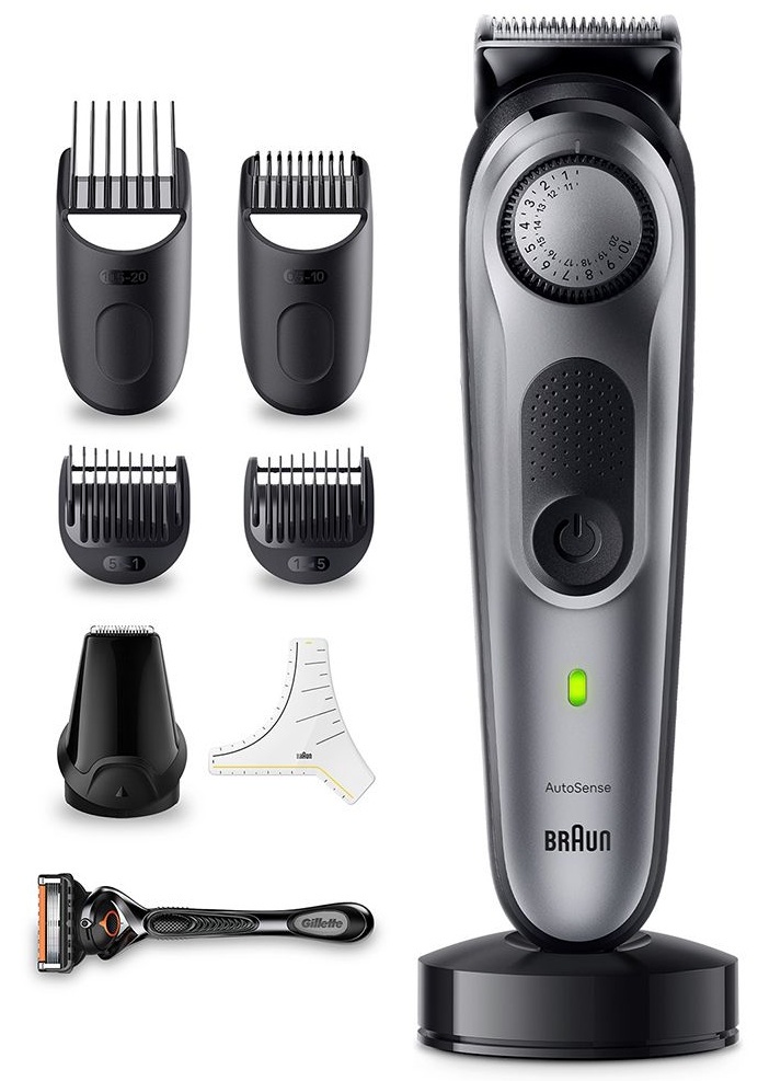 Setpieptene de atașare pentru păr scurt (1-10 mm), pieptene de atașare pentru păr lung (10-20 mm), atașament de styling de precizie, perie de curățare, Cablu de încărcare SmartPlug