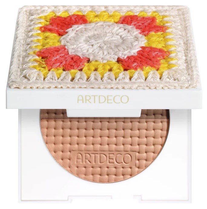 Textura catifelată și delicată asigură o senzație plăcută pe piele, iar pigmentarea instantanee face aplicarea ușoară și uniformă. Acest bronzer impresionează prin designul său unic, cu model tricotat din fire naturale – un element esențial în trusa ta de machiaj pentru vară!