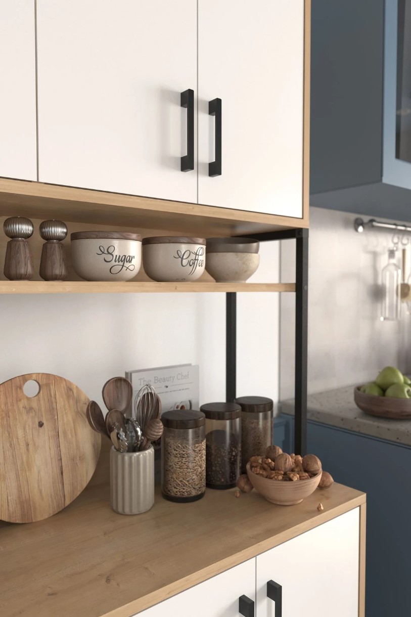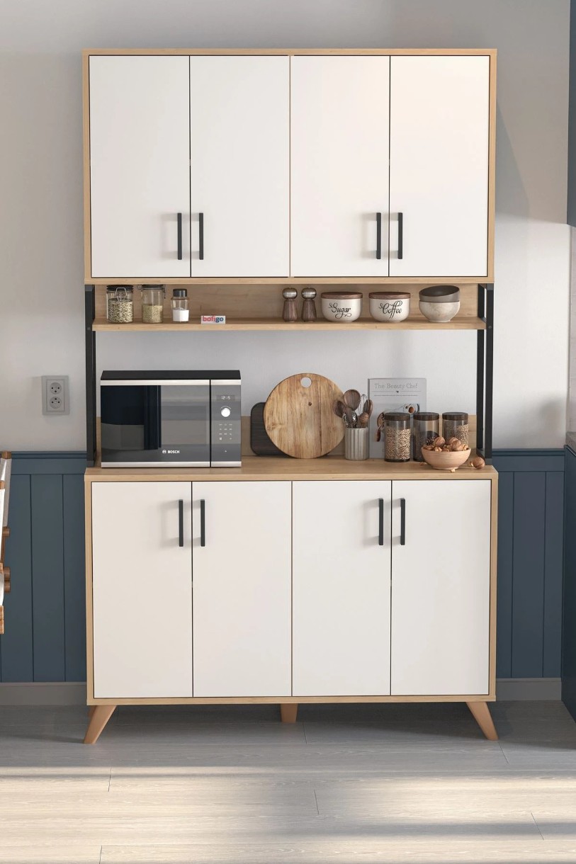 Bufetul pentru bucătărie Bofigo Defne este o soluție modernă și practică pentru organizarea spațiului și depozitarea lucrurilor necesare. Produs al brandului turcesc Bofigo, acesta îmbină funcționalitatea cu un design minimalist potrivit pentru orice interior. Produsul este realizat din PAL de 18 mm, oferind rezistență și durabilitate în utilizare zilnică. Construcția este gândită pentru organizarea eficientă a obiectelor din bucătărie. Elementele metalice sunt acoperite cu vopsire în câmp electrostatic, ceea ce oferă protecție împotriva uzurii și prelungește durata de viață.