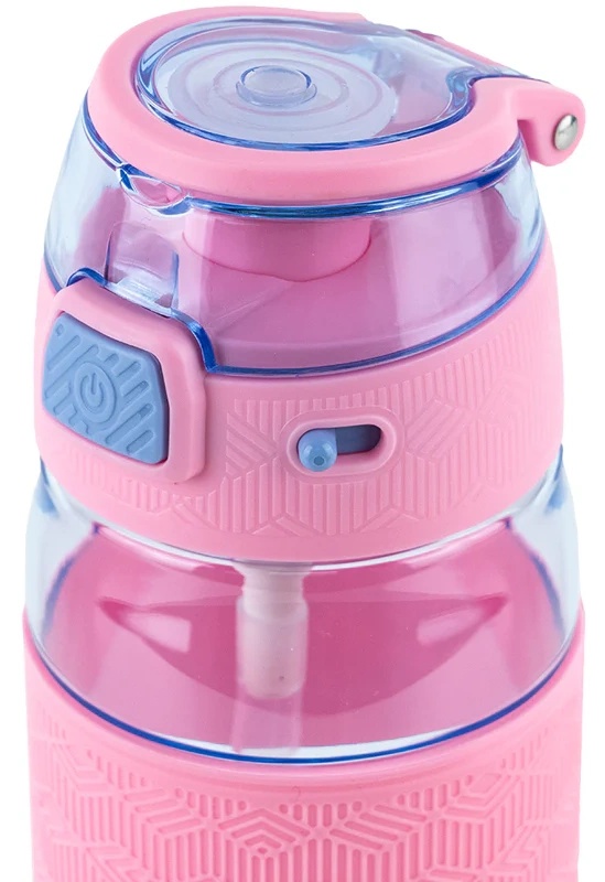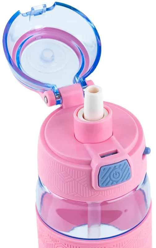 Sticla este dotată cu un pai din silicon, care permite să bei confortabil chiar și în mișcare. Capacul se închide etanș, prevenind scurgerile, și protejează piesa de băut de murdărie. Un sistem de blocare previne deschiderea accidentală. Zona de prindere este acoperită cu un strat cauciucat și texturat – plăcută la atingere și antiderapantă.