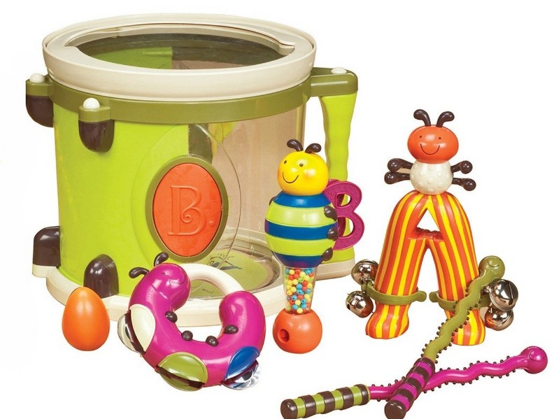 Jucaria muzicala - PARAM-PAM-PAM este un set colorat de instrumente muzicale realizate in stil etnic ce va va permite sa creati o orchestra intreaga! Include: toba - doua bete pentru toba in forma de sarpe - doua maracase confortabile - tamburina dragut sub forma unei omide - furnica cu clopotei - maracase sub forma de albine. Jucaria muzicala - PARAM-PAM-PAM va contribui la dezvoltarea: - auzului muzical - creativitate - imaginatie.