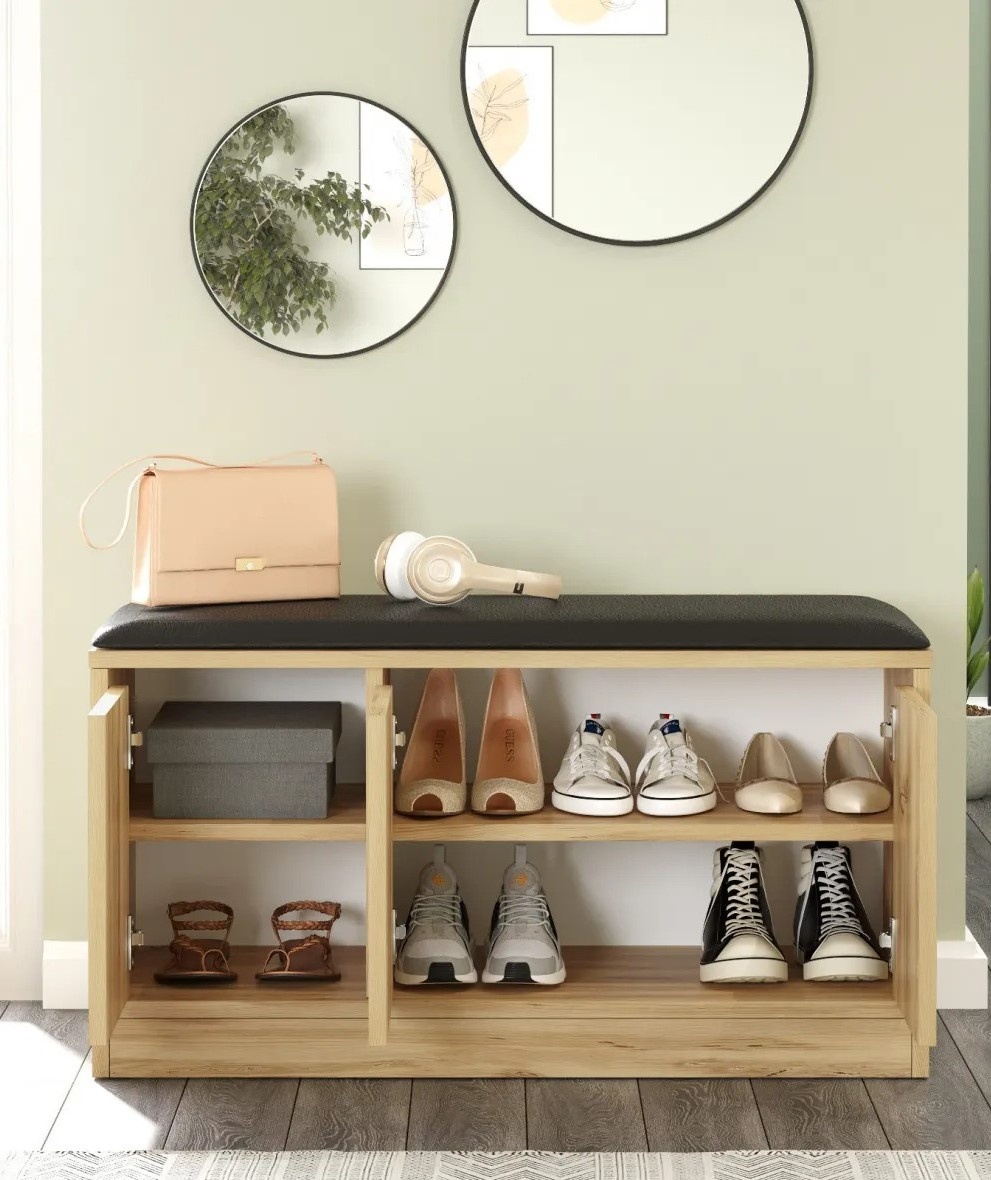 Cu dimensiunile de 89,6 cm lățime, 45,8 cm înălțime și 35,5 cm adâncime, dulapul pentru pantofi se potrivește cu ușurință în diverse încăperi. Oferă spațiu generos pentru depozitare, ocupând în același timp o suprafață minimă pe podea. Intrările dezordonate devin istorie, iar locuința capătă un aspect ordonat și armonios.