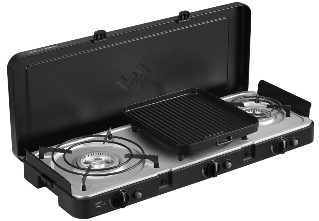 Designul său elegant și compact include butoane de control încastrate, suport detașabil pentru vase, paravânturi duble și o placă reflectorizantă pentru căldură, pentru un gătit stabil și eficient în orice condiții. Plita este ușor de transportat și depozitat datorită genții de transport incluse.