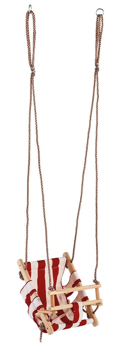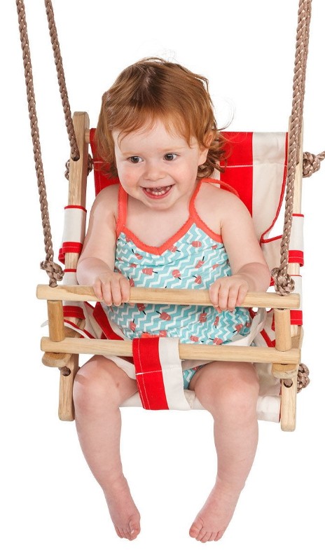 Scaunul din pânza este conceput ca un scaun de plajă, atrăgător și confortabil pentru copii de până la trei ani. De asemenea arată natural. Inele și optari sunt realizate din oțel galvanizat. Sudurile pe corzi sunt făcute în PP negru.