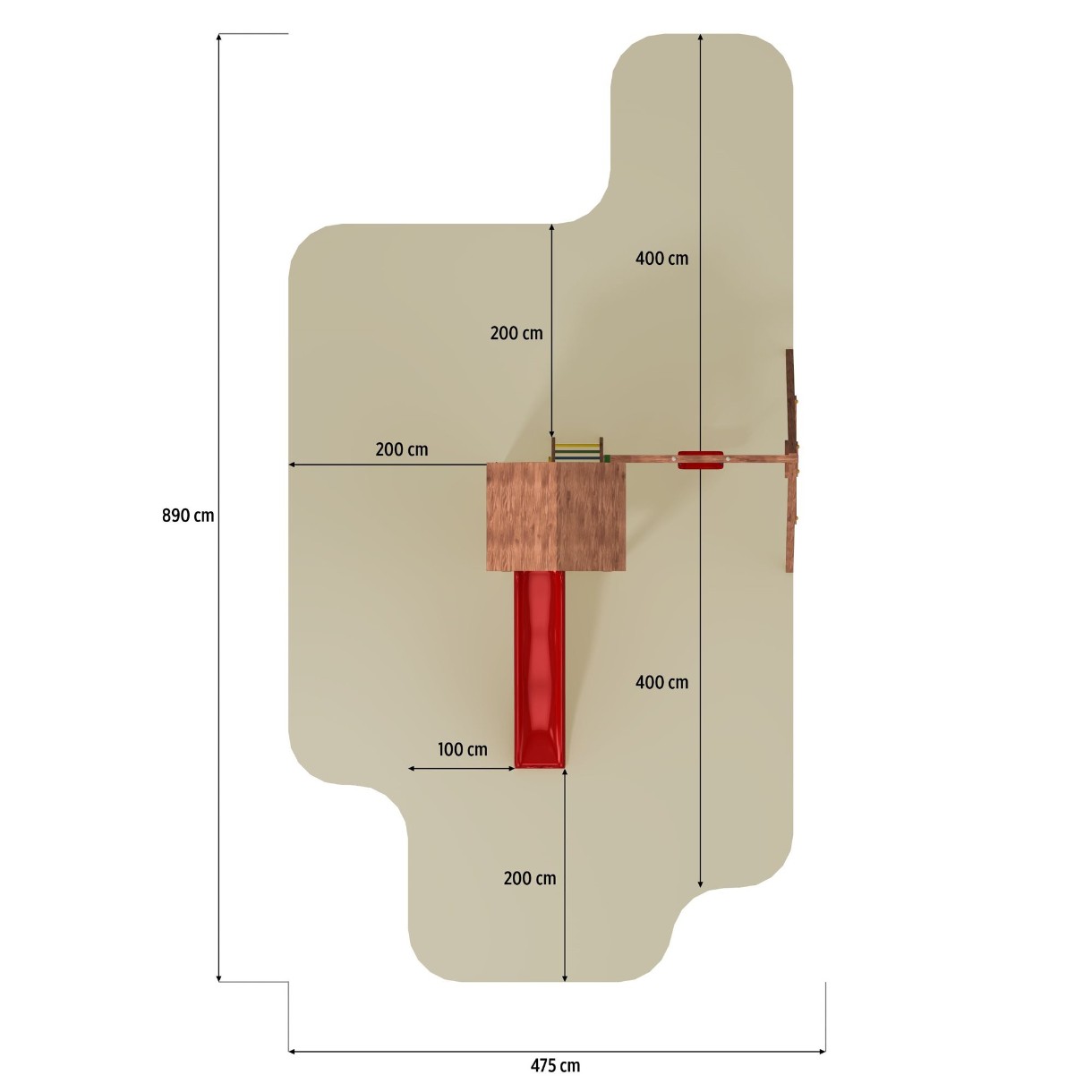In setnisipar, tobogan, leagăne, scara, perete de alpinism