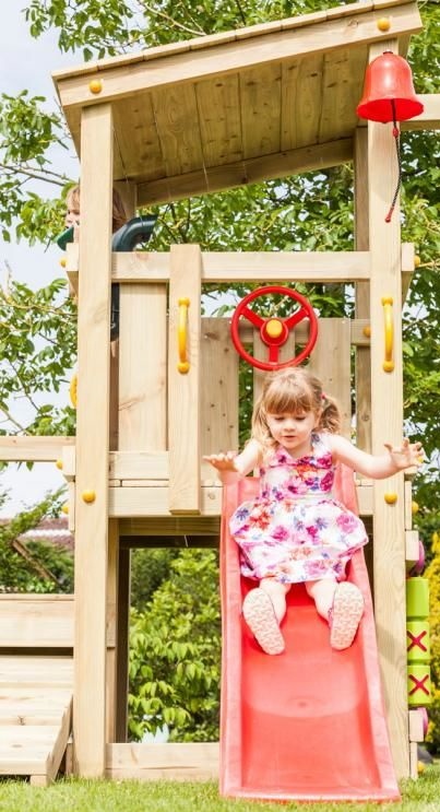 Acest minunat spatiu de joaca CASCADE-2 combina multiple forme de joaca transformand curtea in cel mai indragit loc de joaca. Toboganul și scara sunt poziționate în partea din față, fapt pentru care instalarea este ideala pentru grădini mici. Loc de joaca de uz rezidential. Unul dintre accesoriile de ales (binoclu, oglinda, megafon, volan) !