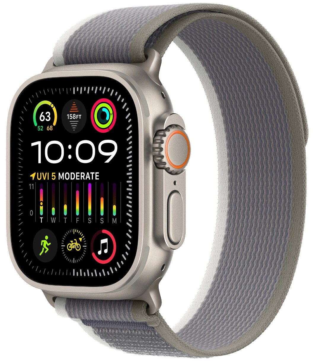 Smartwatch Apple Watch Ultra 2 GPS + Cellular 49mm Titanium Case with Green/Grey Trail Loop S/M (MRF33)