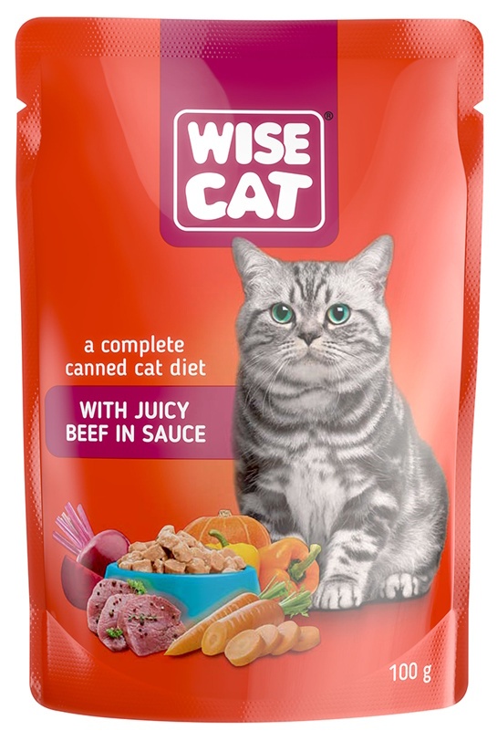 Hrană umedă pentru pisici Wise Cat Adult Cat Juicy Beef in Sauce 24x100g