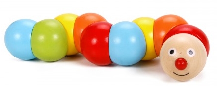 Această omidă drăguță este potrivită pentru micile mâini ale copilului. Omida este realizată din bile durabile din lemn, cu o bandă elastică groasă, astfel încât bebelușul se va distra răsucind și îndoind-o. Jucăria este fabricată din lemn natural, pentru producerea ei se folosesc vopsele sigure.