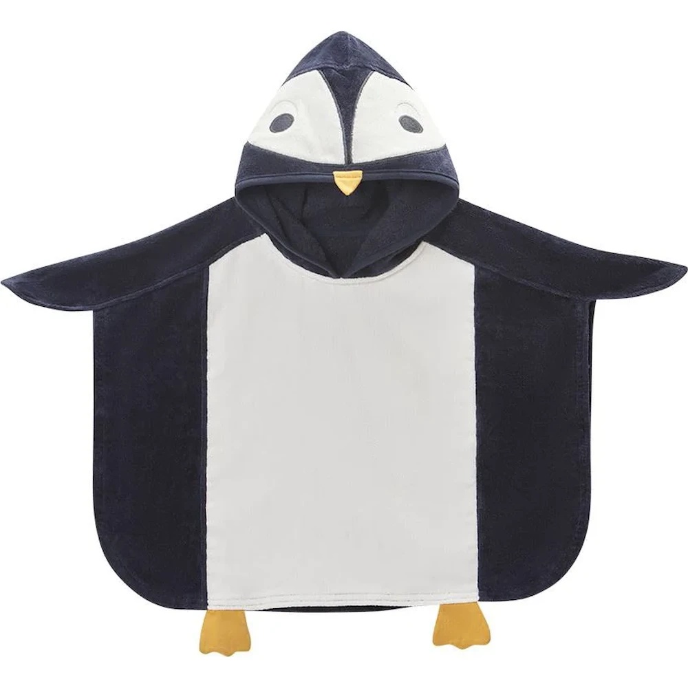 Prosopul-poncho Premaman Penguin este accesoriul ideal pentru baie pentru cei mici. Asigură uscarea rapidă și confortabilă, păstrând căldura copilului după baie sau înot. Materialul moale și plăcut la atingere protejează pielea delicată a bebelușului, iar gluga amuzantă în formă de pinguin protejează capul și adaugă un element jucăuș în timpul uscării.