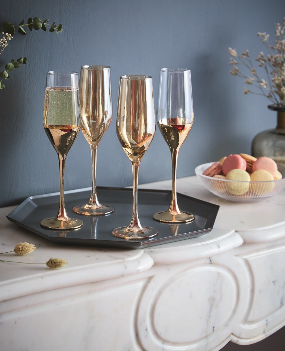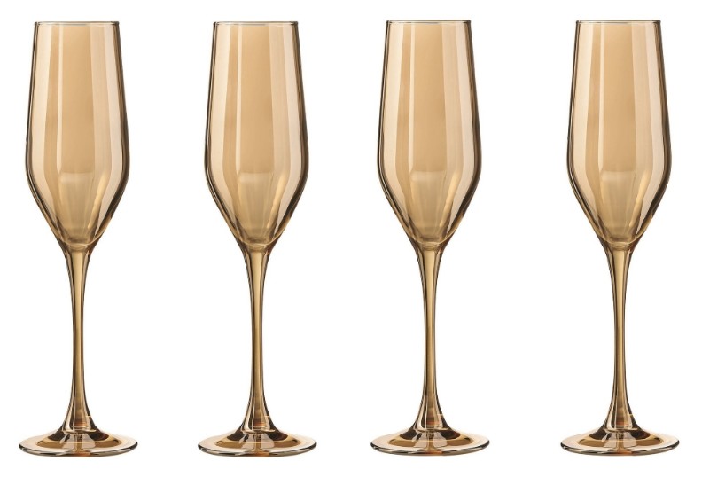 Set din 4 pocale pentru șampanie din seria Celeste Golden Honey cu o capacitate de 160 ml. Pocalele sunt fabricate din sticlă rezistentă la lovituri. O soluție excelentă pentru utilizarea în baruri, restaurante și acasă. Pocalele Celeste Golden Honey pot deveni un cadou perfect și o decorare minunată a mesei festive. Pot fi spălate în mașina de spălat vase.