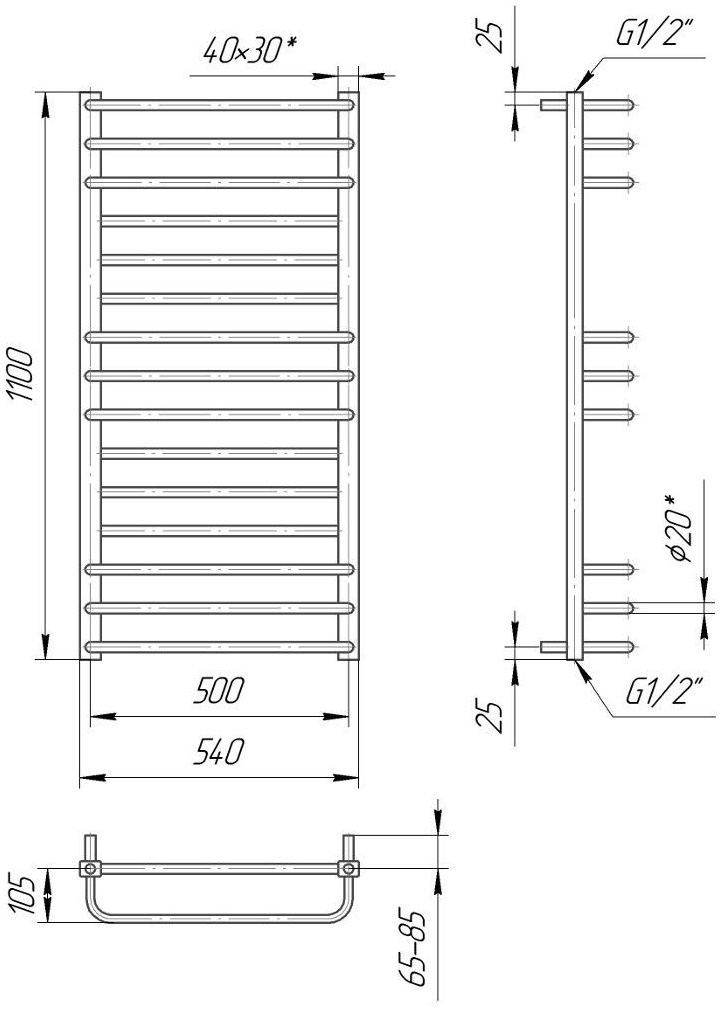 Uscător de prosoape Mario Premium Lux 1100х540/500