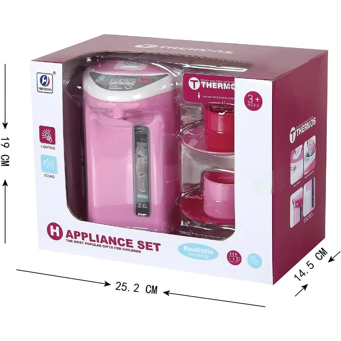 Complectare: Setul include un termopot cu volumul de 2,0 litri și pahare din plastic cu farfurioare.