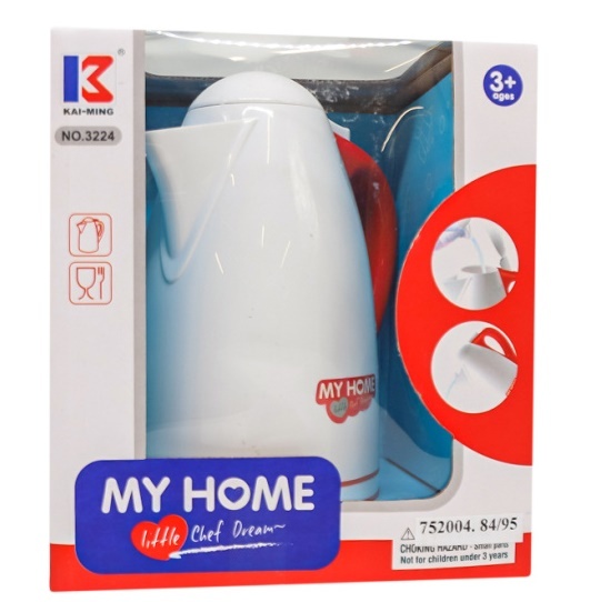 Ceainicul de jucărie va diversifica jocurile de bucătărie ale copiilor. Ceainicul alb și roșu cu design modern seamănă foarte mult cu un ceainic real, cu excepția faptului că nu încălzește apa. Puteți turna apă în el și apoi să faceți un ceai fictiv sau o băutură din fructe. Ceainicul are o fereastră din plastic transparent prin care puteți vedea nivelul apei. Jucăria este fabricată din plastic durabil rezistent la impact.