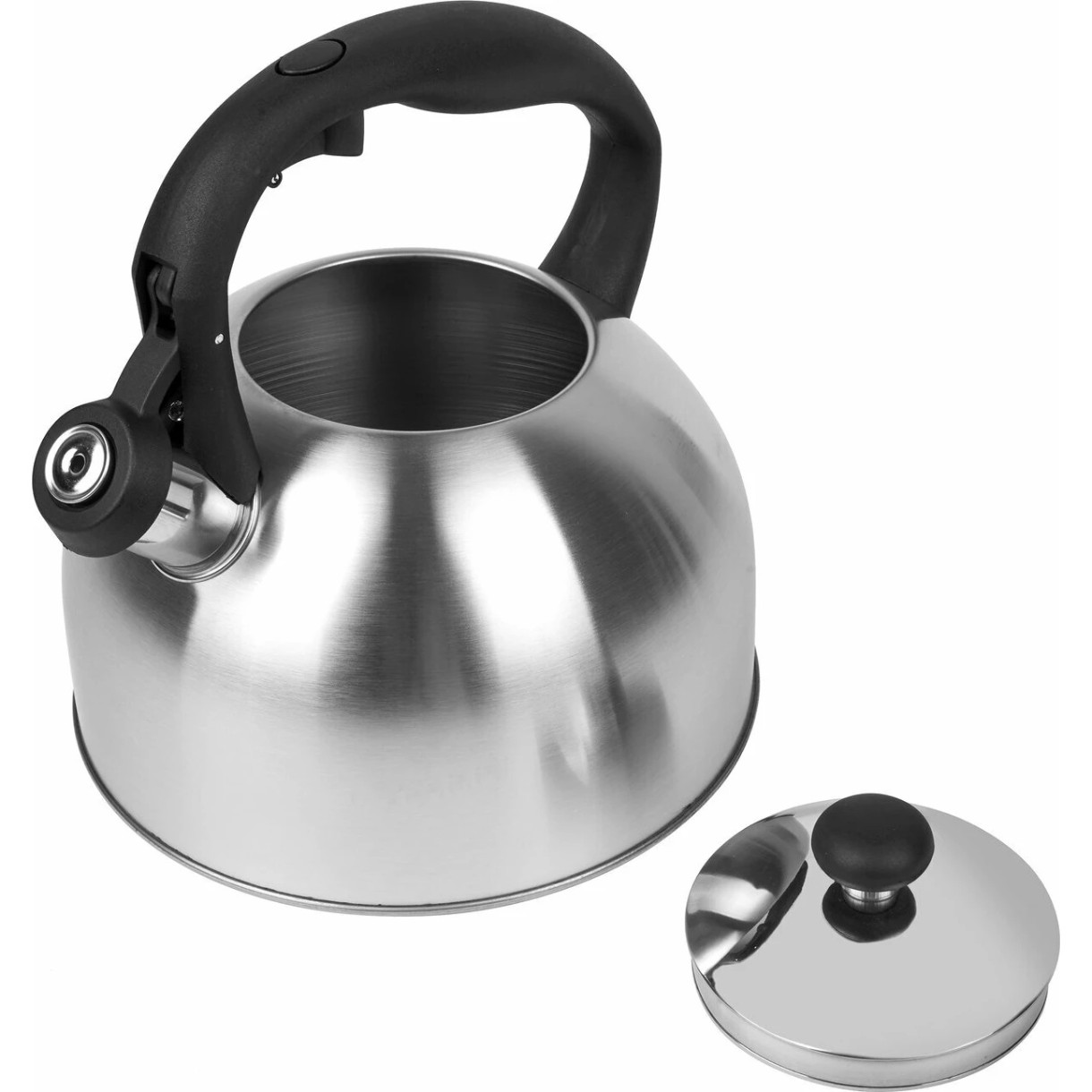 Fierbător pe gaz Tadar Larry clasic de 3L - alte avantaje ale comenzii: - un ansamblu robust de fluier, deschis cu ajutorul unui mecanism încorporat în mânerul din bachelită al fierbătorului, - o capacitate mare, suficientă pentru mai multe cești de cafea sau ceai simultan, - un design modern cu un corp satinat argintiu, - distribuție uniformă a căldurii (fierbătorul se încălzește rapid, economisind timp și energie).