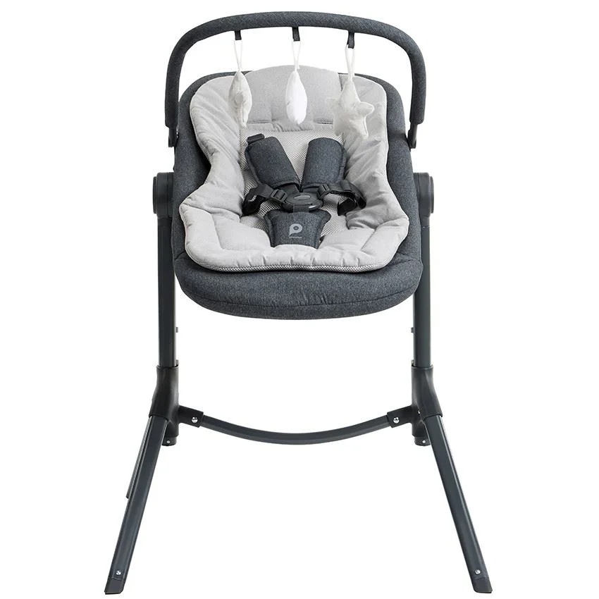 Datorită celor 5 înălțimi reglabile, se adaptează la rutina zilnică și îi permite bebelușului să fie alături de tine, fie lângă canapea, fie la masă. Ajustează înclinația pe 3 poziții pentru odihnă sau trezire, și comută ușor în modul balansoar pentru momente de liniște.