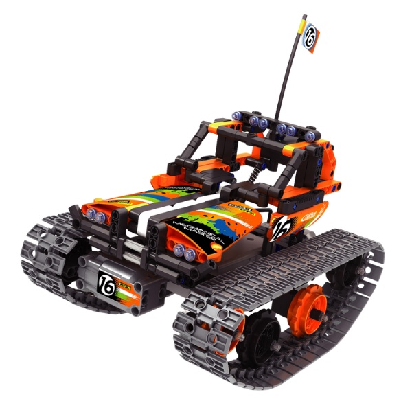 Acest set auto de construcție controlat prin telecomandă oferă copilului distracție maximă și dezvoltă gândirea tehnică, atenția și imaginația. Din 392 piese, se pot asambla trei modele: robot, vehicul all-terrain și mașină automată.