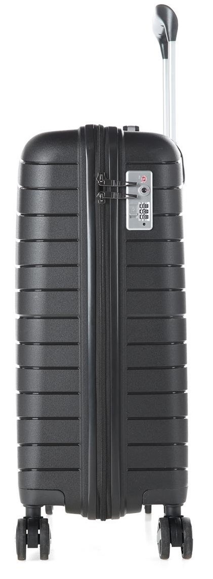 Valiza ÇÇS din polipropilenă, de dimensiuni pentru bagaj de mână, combină greutatea redusă cu durabilitatea, fiind alegerea ideală pentru cei care apreciază practicitatea, siguranța și rezistența în călătorii.
