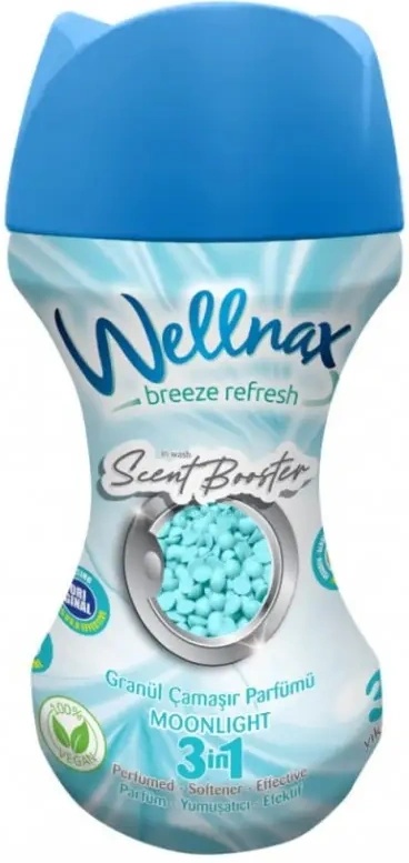 Wellnax Moonlight- granule parfumate pentru rufe 210 g oferă o prospețime de durată și un parfum plăcut pentru hainele tale. Aceste granule se adaugă direct în ciclul de spălare și eliberează treptat aromă, lăsând țesăturile parfumate, moi și îngrijite pentru perioade îndelungate după spălare. Formula este compatibilă cu majoritatea materialelor textile și menține moliciunea fibrelor, în timp ce parfumează rufele într‑un mod discret și persistent.