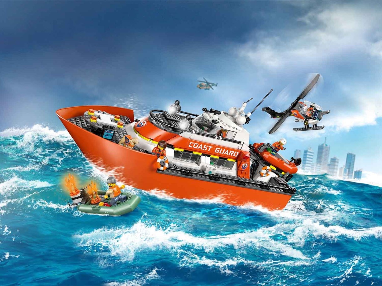 Set de construcție Lego City: Coast Guard Rescue Boat & Helicopter (60504)
