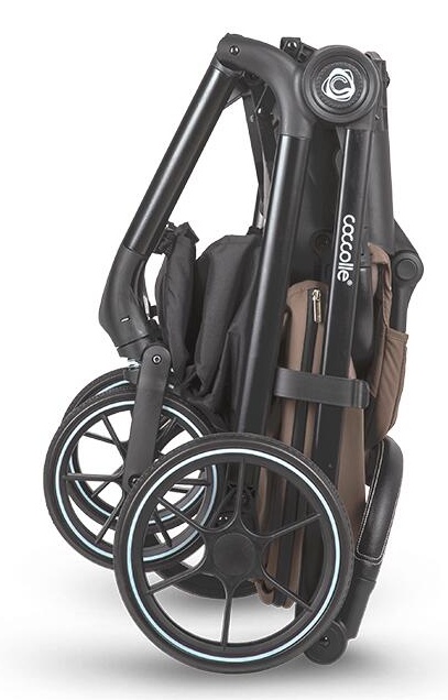 Dotat cu roți mari cu jante negre și anvelope din poliuretan rezistent, Coccolle Serry oferă manevrabilitate excelentă și rulare lină atât pe drumuri asfaltate cât și pe terenuri ușor accidentate. Marginea albă discretă de pe anvelope completează estetica urbană a produsului. Frâna este ușor de accesat, iar suspensia asigură o deplasare lină.