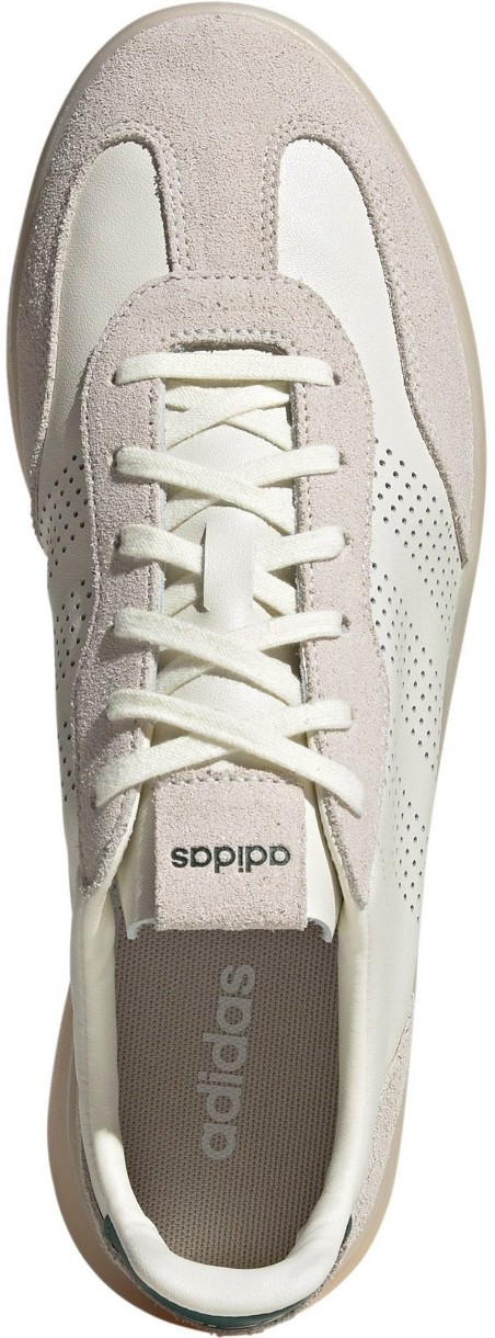 Partea superioară din piele naturală de înaltă calitate conferă un aspect rafinat, iar inserțiile din piele întoarsă adaugă textură și profunzime vizuală. Vârful în formă de T amintește de siluetele clasice adidas, dar designul rămâne modern și versatil datorită liniilor curate și detaliilor bine gândite.