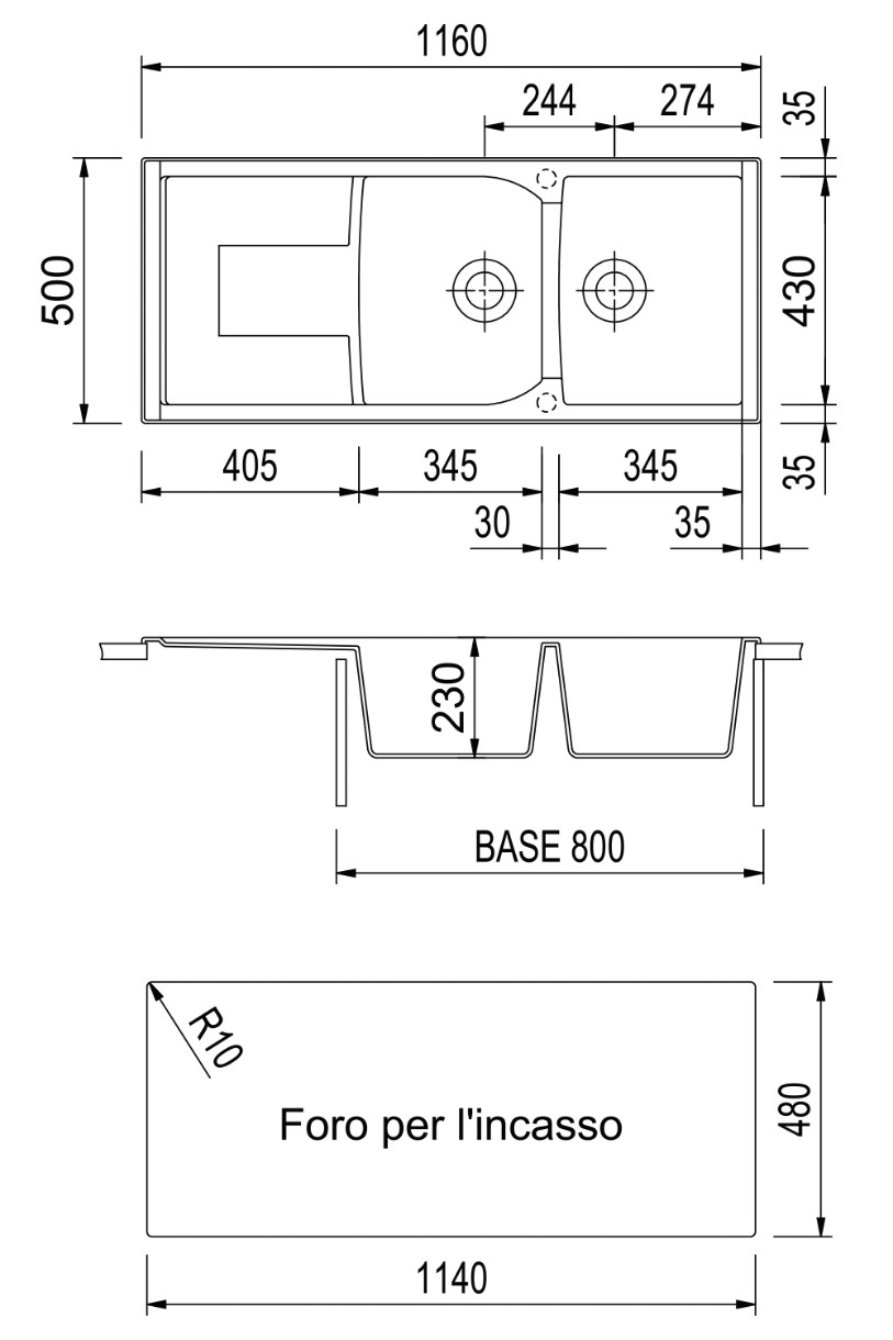 Adâncime cuvă auxiliară230 mm