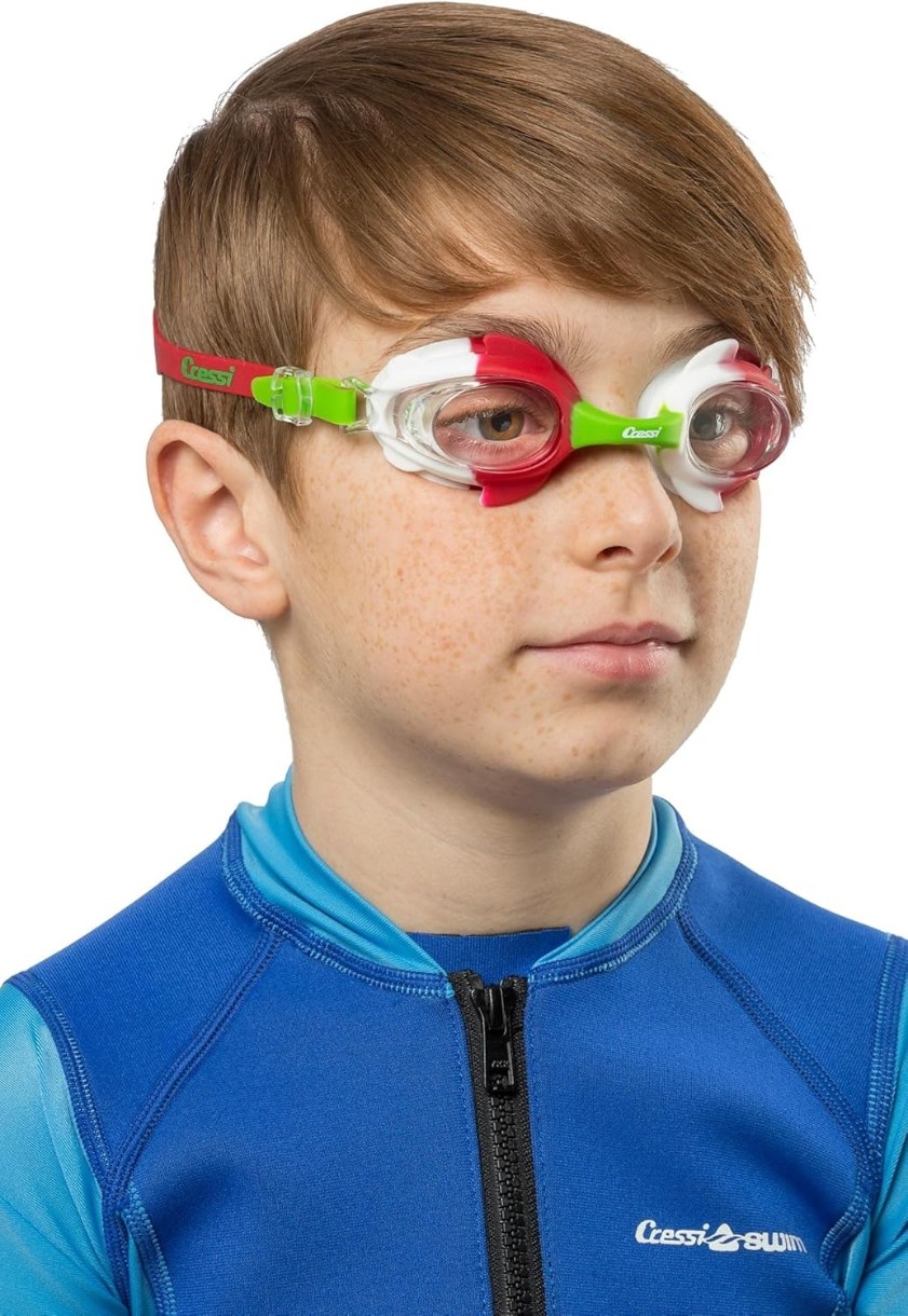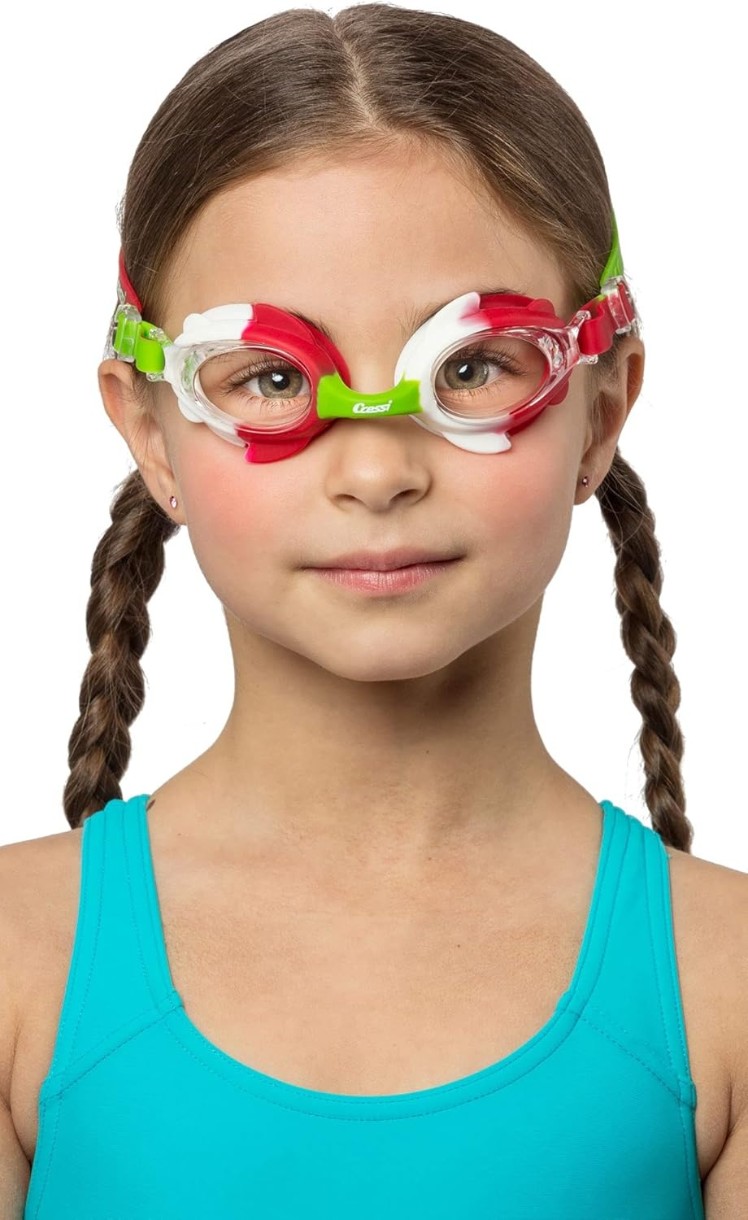 Ochelarii de înot Cressi Seahorse Green/White/Red (XDE029038) sunt concepuți pentru copii mici cu vârsta aproximativă de 4-8 ani. Au garnituri moi din silicon care asigură confort și etanșare bună pe față. Lentilele sunt din policarbonat, rezistente la impact și potrivite pentru utilizare zilnică. Ochelarii oferă protecție UV și tratament anti-aburire pentru o vizibilitate clară sub apă. Cureaua este tot din silicon și se reglează ușor cu clipsuri laterale. Designul este ușor și confortabil, special adaptat pentru copii.Sunt potriviți pentru piscină, cursuri de înot și joacă în apă.