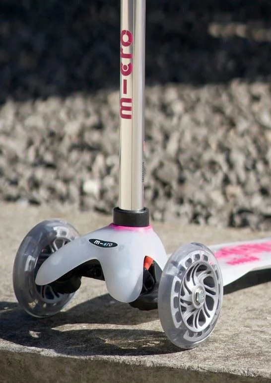 Adevărata magie a acestei trotinete pentru copii constă în roțile sale impresionante cu LED. Acestea sunt alimentate de un mecanism modern de tip dinam, care transformă mișcarea în energie, iluminând roțile fără baterii. Indiferent dacă este zi sau noapte, Mini Micro Deluxe Flux LED te asigură că ești mereu vizibil și plin de stil în timpul plimbărilor.