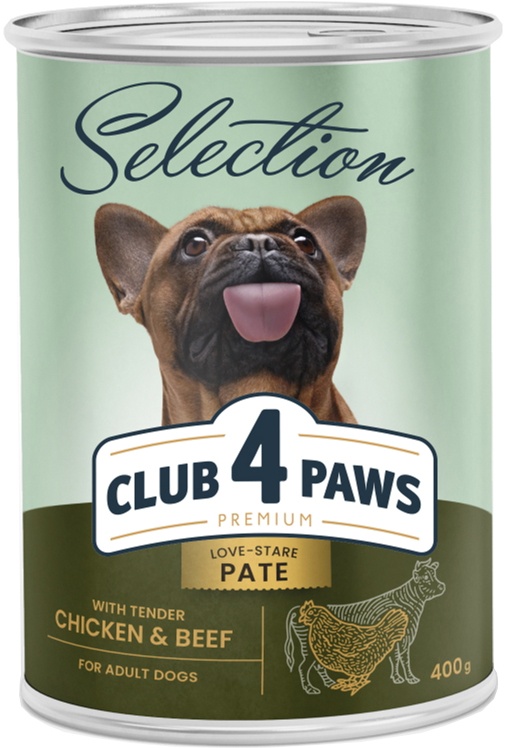 Hrană umedă pentru câini Club 4 Paws Selection Adult Pate Chicken & Beef 400g 12pcs imaginea #1 — magazin online Desire.md