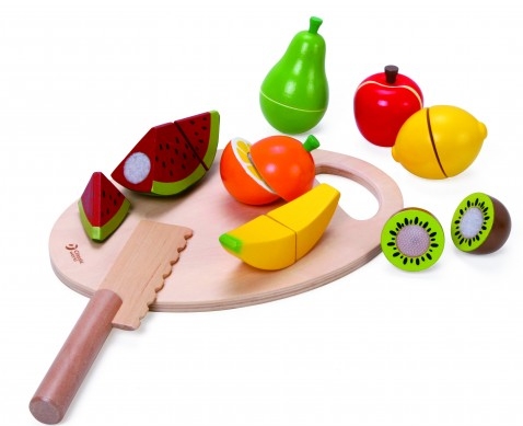 Setul include: o placă cu suspensie, un cuțit, fructe: pepene verde, lămâie, banană, pere, kiwi, măr, portocaliu. Constă din 2 jumătăți cu Velcro.