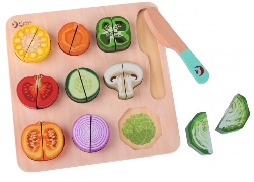 Set "Legume tăiate" Classic World sunt fructe colorate pe care le puteți a taia. Setul este confecționat din lemn natural, pentru producția sa se folosesc vopsele sigure pentru sănătate.