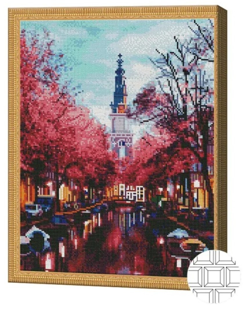 Pictura cu diamante după numere Art Gallery Premium Цветущая улочка города 40x50cm (QB206043)