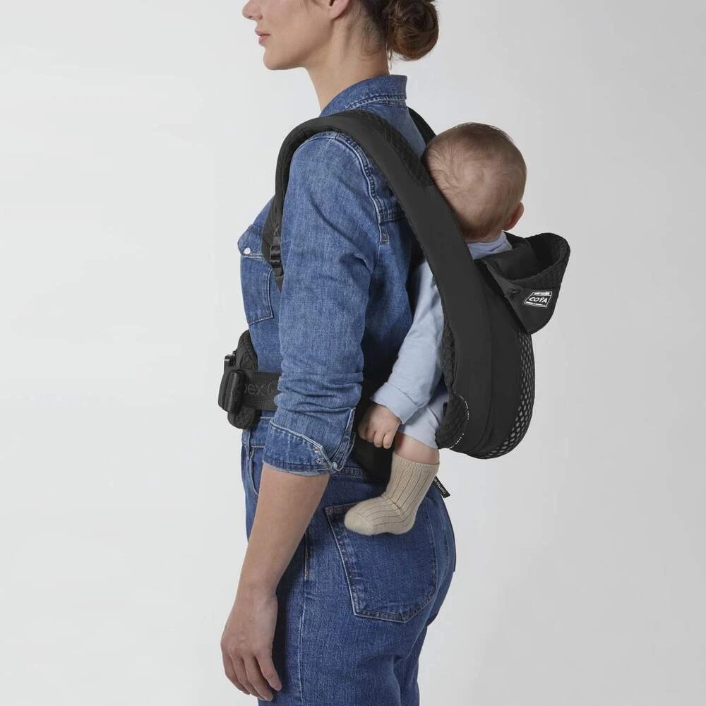 Creați o legătură strânsă de la naștere cu marsupiul CYBEX Coya, un marsupiu la modă, conceput pentru părinții moderni. Un panou dorsal inovator cu material plasă 3D se autoadaptează pentru a se potrivi oricărui copil de la naștere până la vârsta de trei ani. Designul inteligent și numeroasele opțiuni de personalizare distribuie greutatea copilului, eliminând în același timp efortul de pe părinte. Respirabilitatea îmbunătățită a materialului plasă și fluxul de aer superior mențin pe toată lumea proaspătă și răcoroasă. Sunt disponibile mai multe opțiuni de purtare pentru fiecare etapă din dezvoltarea bebelușului dumneavoastră: începeți cu poziția de purtare frontală spre interior, apoi treceți la pozițiile de purtare frontală spre exterior sau spate spre interior atunci când bebelușul este pregătit. Fiecare dintre aceste poziții susține postura M (sau poziția ghemuit întins) sănătoasă pentru șold și corectă din punct de vedere ergonomic, susținând în același timp curbura naturală în formă de C a coloanei vertebrale.