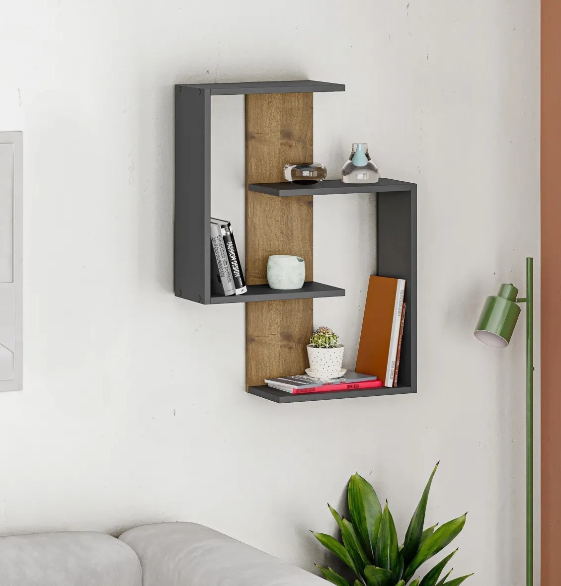 Raft de perete Trendy Paranoid Anthracit/Dark Oak 85x64x22cm GTR005358