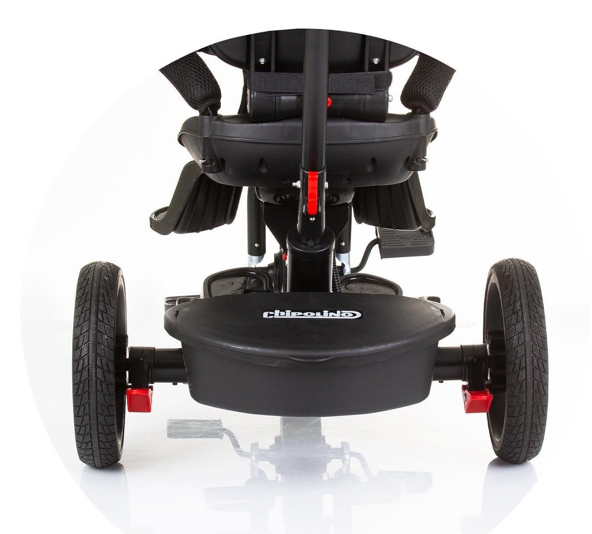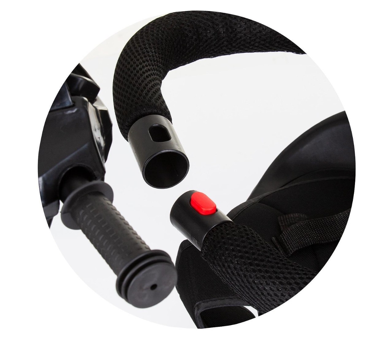 - Capota, mânerul pentru părinți și bara de protecție sunt detașabile, astfel încât tricicleta se transformă într-o tricicletă pentru un copil mai mare;