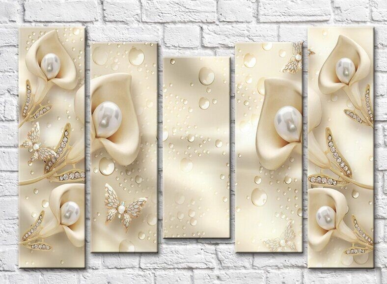 Pictură ArtPoster Beige calla lilies with pearls and diamonds on a splash background (3551913)