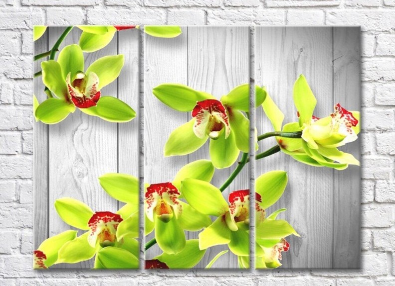 Pictură Rainbow Green orchid flowers on gray plank background (500318)