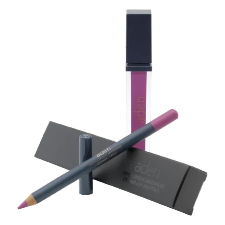 Ruj de buze Aden Cosmetics Liquid Lipstick + Lipliner Pencil Set Cerise 10