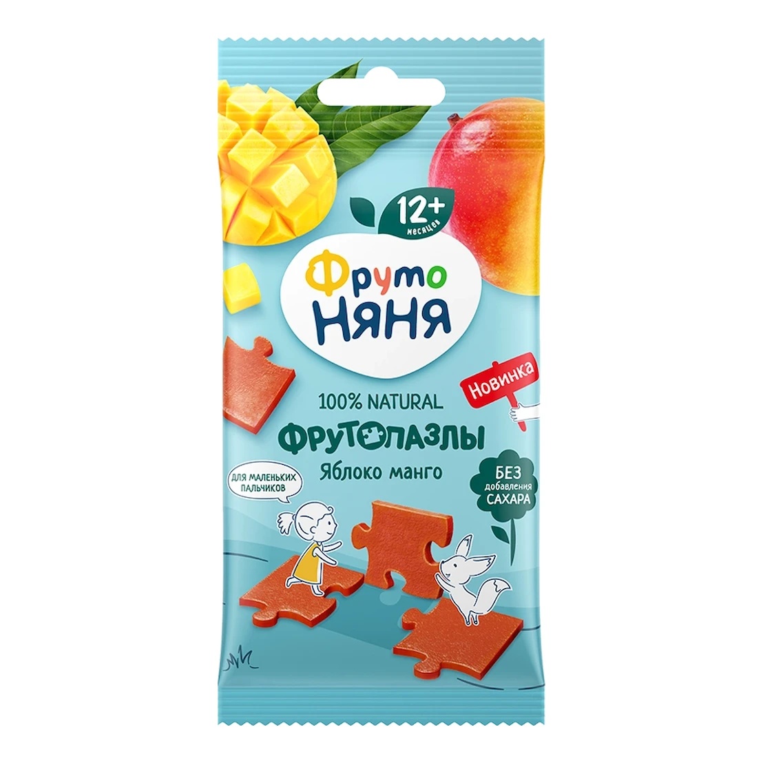 „FrutoPuzzle” din „ФрутоНяня” din mere și mango este o marmeladă de fructe pentru copiii de peste 12 luni. Conține sucuri naturale și piure din mango copt și mere coapte fără zahăr adăugat. Este atât de interesant să înveți lucruri noi cu ea! Forma originală a marmeladei sub formă de puzzle-uri cu fructe ajută la antrenarea abilităților motorii fine, iar în interiorul fiecărui pachet copilul va găsi cărți de colecție sub formă de puzzle-uri, ajutând la dezvoltarea logicii, memoriei și imaginației! Invită-ți copilul să se joace și să găsească un antonim sau să învețe un cuvânt nou.