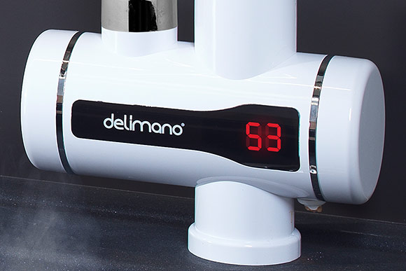 Robinetul electric pentru incalzit apa Delimano Digital PRO poate oferi instantaneu aprovizionare nelimitata cu apa calda de practice pana la 60 de grade, economisind timp, energie si apa. Ecranul digital mare si usor de citit va permite sa monitorizati temperatura apei iar conducta de otel inoxidabil a acestuia ofera un aspect atragator. Este usor de instalat si poate fi folosit peste tot — in bucătărie, baie, garaj sau chiar si in casa ta de vacanta.